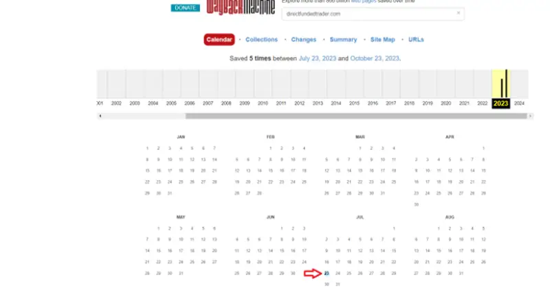 همچنین مطابق گزارش دیگر از وبسایت وب آرشیو (Web.archive.org) اولین تصویر بایگانی ثبت شده از سایت دایرکت فاندد تریدر در جولای ۲۰۲۳ ثبت شده است. وب آرشیو یک پلتفرم ثبت و بایگانی اطلاعات و صفحات مربوط به وبسایتها میباشد.