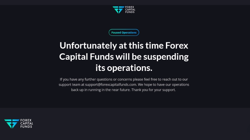 همانطور که در تصویر مشاهده میکنید با مراجعه به سایت رسمی این پراپفرم به آدرس: forexcapitalfunds.com با پیغام توقف عملیات این مجموعه مواجه میشوید.