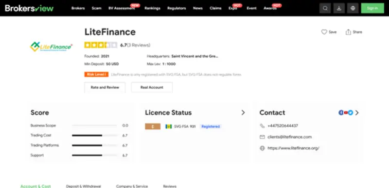 گزارش تهیه شده از Brokers view (ابزاری که اعتبار بروکرها را از زوایای مختلف بررسی میکند)، نشان میدهد Lite forex صرفاً مجوز قانونی خود را ثبت نموده و هیچ اقدامی برای رگوله کردن انجام نداده است. البته SCAM بودن این بروکر نیز تأیید نشده اما تجربه کاربری معاملهگران نشان از عدم رضایت از خدمات این مجموعه را میدهد.
