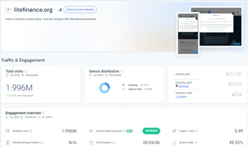 گزارش تهیه شده از Similarweb عملکرد بسیار خوب Lite Forex را نشان میدهد.