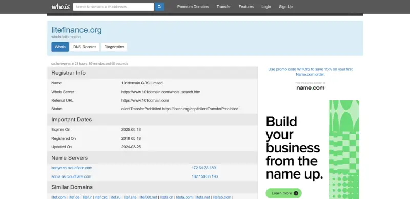 طی گزارشی که از طریق ابزار who.is تهیه شد دامنه وب سایت Lite Forex به آدرس اینترنتی litefinance.org در سال ۲۰۱۸ ثبت شده و دارای فعالیت طولانی مدت در این حوزه است.