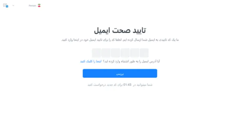 در مرحله بعد یک کد به ایمیل شما ارسال خواهد شد که باید آن را وارد نمایید.