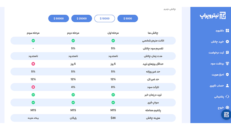 بررسی پلن های پراپ فرم نیترو پراپ