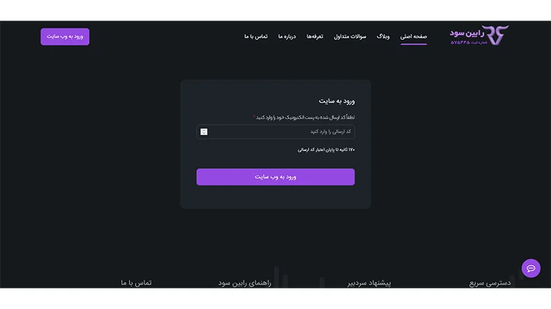 برای ثبتنام و استفاده از خدمات پراپفرم رابین سود وارد وبسایت رسمی مجموعه به آدرس www.robinsood.com شده و مانند تصویر در قسمت بالای وبسایت روی لینک ورود به سایت کلیک کنید.