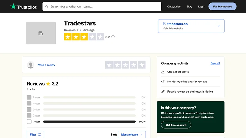 در سایت Trustpilot که یک مرجع تخصصی نقد و بررسی پراپ فرمها میباشد، امتیازی ستارگان ترید ۳.۲ از ۵ است که البته با توجه به ایرانی بودن این پراپ نمیتوان به صحت این آمار اکتفا کرد.